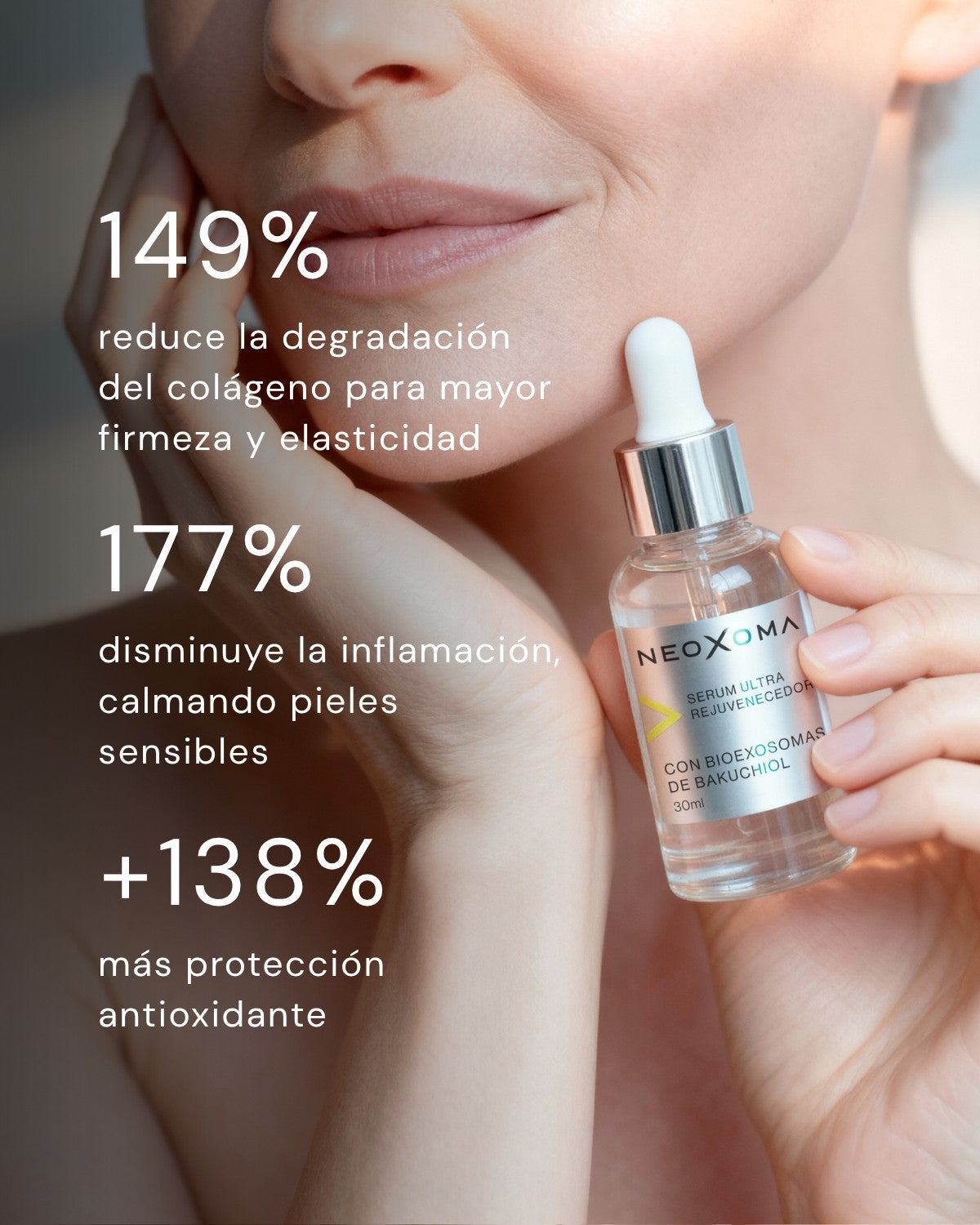 2. Completa tu ritual con el Sérum Ultra Rejuvenecedor de Neoxoma que estimula la regeneración celular, mejora la firmeza y combate los signos visibles de la edad.